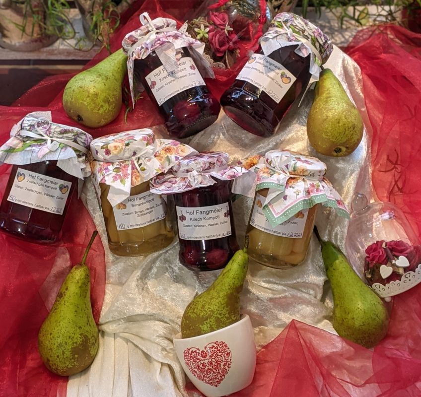Allerlei Selbstgemachtes in einer vielfältigen Auswahl. Marmeladen, Gelees, Kompotte, Eingemachtes, Eingelegtes und Liköre nach alten Familienrezepten gekocht oder eingemacht. Da MUSS man sich "durchprobieren"!